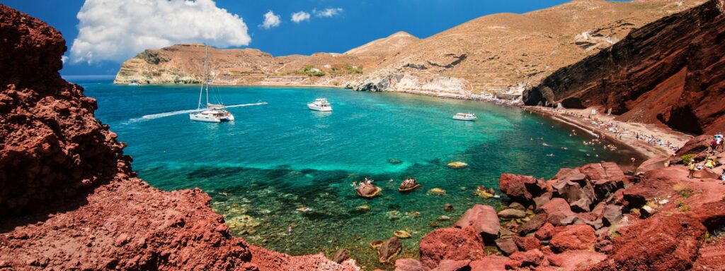 Wander through the charming whitewashed villages of Oia and Fira, with their winding alleys, breathtaking caldera views, and boutique shops. Discover the island’s rich history in Akrotiri or at the Archaeological Museum, or simply unwind on its unique beaches—like the Red Beach, Perissa, and Kamari, known for their striking volcanic sand and crystal-clear waters.